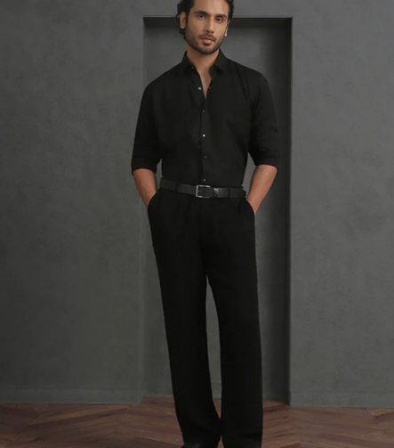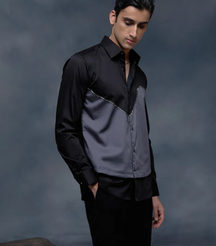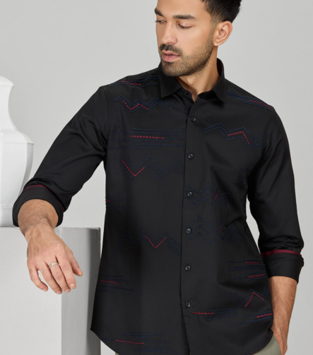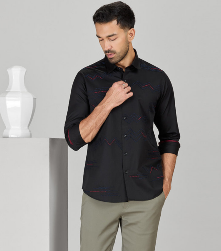 Black Cotton Designer Shirt in Slim Fit