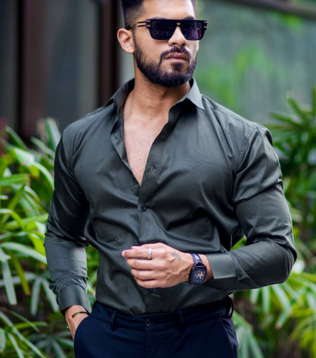 Olive Green Luxury Formal Satin Cotton Shirt