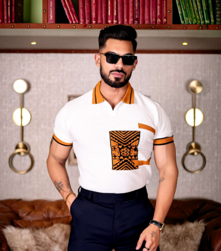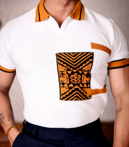 White and Orange Designer Cotton Half Sleeve Premium T Shirt