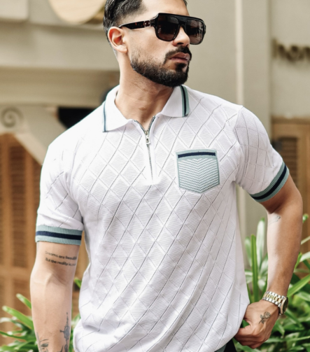 WHITE HALF SLEEVE KNITTED TSHIRT