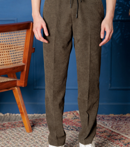 OLIVE CORDUROY RELAXED FIT TROUSER